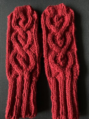 I wanted a heart cable and bulky mittens - something to knit fairly quickly, be warm, and have a love theme.