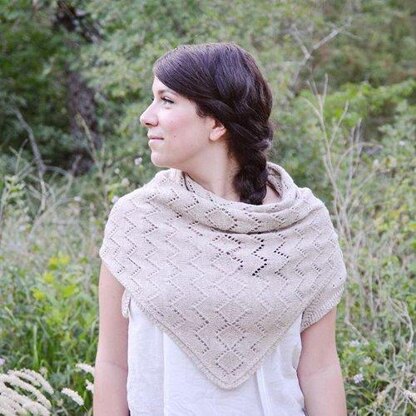 As for the construction, I’ve tried something completely different. You start off with a provisional crochet cast on, and work sideways to one edge. Then the stitches are picked up, and the second portion of the shawl is completed. It is so easy, and the simple eyelet chevron stitch makes it a very enjoyable knit. I would say that it’s a perfect project for new-to-lace knitters, and a pure relaxing piece for more advanced ones!
