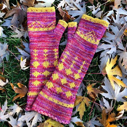 Nabati takes its name and inspiration from a people group, rather than strictly a location. The Nabateans lived in what is now northwestern Saudi Arabia. Their civilization was a part of the incense route, as it headed west toward Israel and Egypt. Modern Saudis are cultivating an interest and study in the traditional crafts, art, architecture, and artisans of their own history. These mitts are knit in the round, with a thumb gusset that is returned to and picked up at the end, and sharing the subtle two color patterning which recalls the pottery of this area.