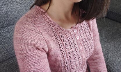 YarnThis cardigan is knit with a yarn of type fingering weight 360m/100g (Mérinos SW and Mohair from C’laines, col. Rose Anglais). Approx. : 850, 950 (1050, 1150, 1250, 1350, 1450, 1550) m 930, 1040 (1150, 1260, 1370, 1480, 1585, 1950) yards.