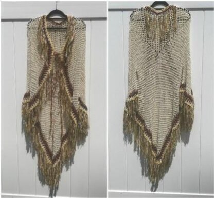 Open Poncho With Sleeves Fringed Native American Style Tribal