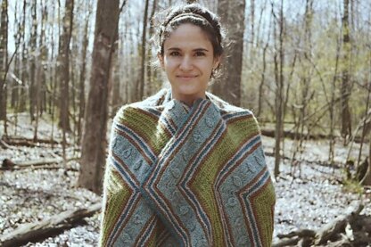 Natural Mystic is a large rectangular wrap which features various stitch patterns and colors. This bohemian, earthy wrap was inspired by the earth’s elements; it showcases raindrops, ridges and stockinette sections. First a center panel is knit and then stitches are picked up around the edges and the rest of the wrap is worked from the center out, increasing at each of the four corners. A smooth and stretchy I-Cord bind off is worked on the outermost edge. The design is knit up in O-Wool Local which blends alpaca and wool to give this wrap softness, warmth, and a lovely drape.