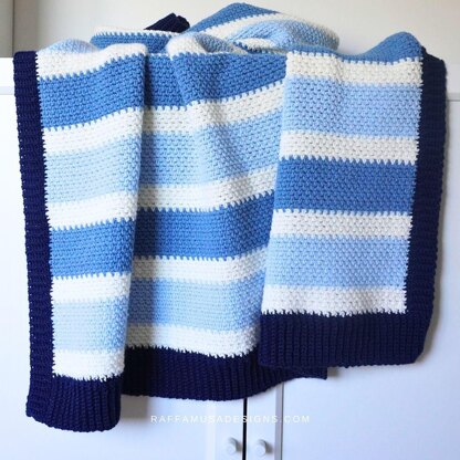 The Navy Stripes Baby Blanket pattern comes in two sizes for a preemie baby blanket and a standard baby blanket.