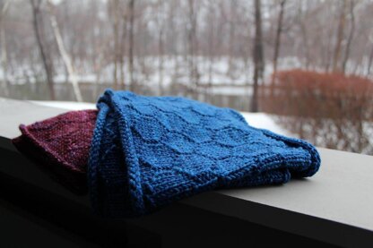 Hexagon stitch pattern is knit in multiples of 8 stitches, so sizing is easily adjusted as desired.