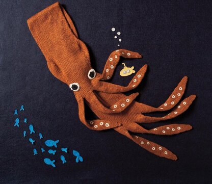 This entertaining scarf has tentacles in place of fringe, plus a hidden loop on the underside to draw one end through and keep it snug around your neck. Simple joining tricks in the pattern allow virtually no seaming on this one.