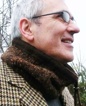 Knitting pattern for stylish Neckwarmer or Cowl, with toggle tie, to pull up round chin. Great for chilly days.