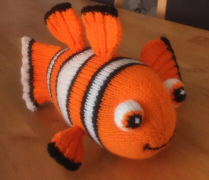 Nemo is knitted flat, the body has one seam along the bottom, the fins are two knitted pieces seamed together to give a feeling of quality to the finished item.