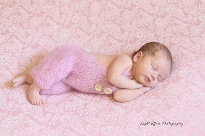 Darling little Baby Dungaree pattern for you to make yourself. It has halter neck ties, to make an easy fit for any baby. The pants are stretchy and soft. Add some cute buttons, or a ribbon to the front.