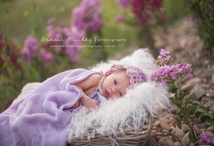 This sweet newborn bonnet incorporates a lovely shell stitch in an open work style that makes it ideal for newborn photography.