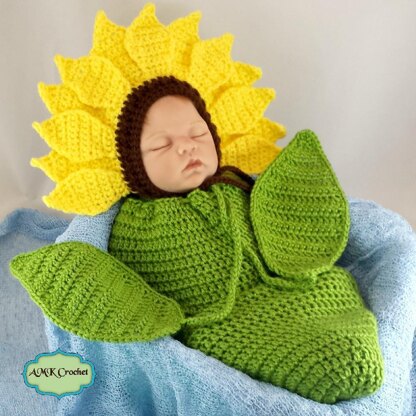 This crochet pattern gives you the instructions, so that you can make an adorable newborn sunflower bonnet hat with cocoon. Perfect addition to spring newborn sessions!