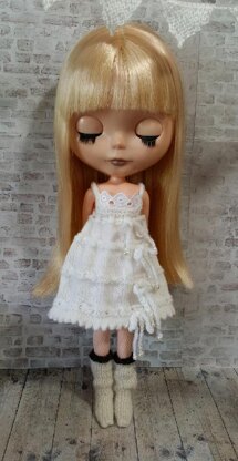 Here is a pattern to knit my Night Night Nightie for your 12" Blythe doll. You will need some fine yarn - Laceweight/2 ply, a small amount of lace, 2mm knitting needles, 2mm crochet hook and some pearls for the ends of the ties.
