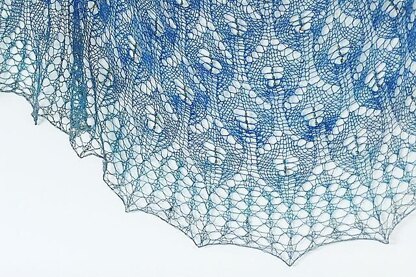 Nightfall is a dynamic design with a highly adaptable format - the main lace can be repeated indefinitely, to create a shawl of any size.