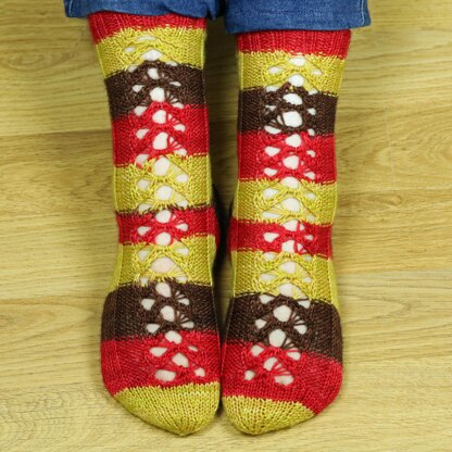 A beautiful old German stitch pattern inspired me to create these socks. The pattern is much easier to knit than it looks.