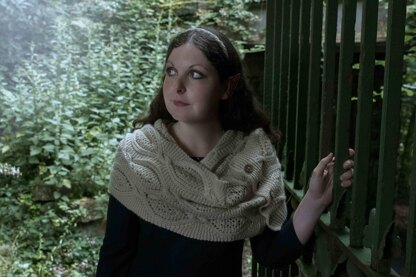 White and soft as snow, this warm and cozy Cowl is made for bright winter days. this beautiful cowl can also be worn as a wrap. The cowl has a reversible lace and cable pattern that ensures no wrong side is ever visible - perfect for immaculate elves.