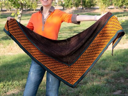 My sample is quite big, but the shawl can be easily made smaller (resizing instructions are provided).