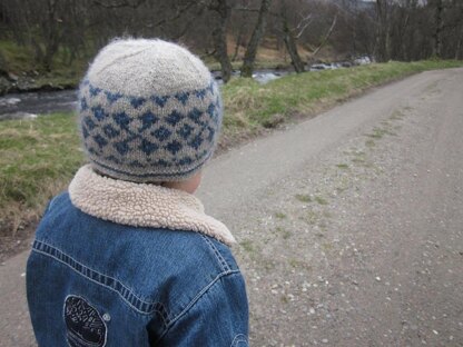 As for the Fair Isle detail, well, I wanted something that would remind of argyle, yet being different. I also wanted a pattern that could fill the whole height of the hat (without being too loud) in order to protect from freezing winds. In the end, I found the perfect little pattern, traditional yet modern, versatile to fit both boys and girls."