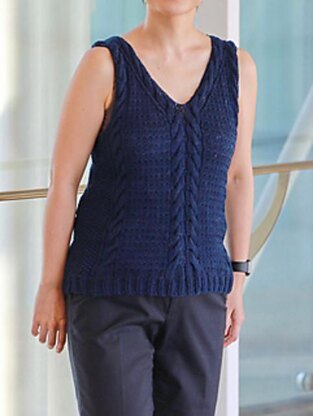 Noble tank is a summer tank top with cables. This top is worked from bottom-up, in the round until dividing front and back body, and then worked flat for upper body. This will be your favorite summer top!