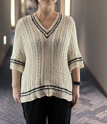 Noble tennis sweater is a V neck cabled sweater. This pattern is worked flat for the upper body and worked in the round for the bottom body and the sleeves after dividing body and sleeves. I don’t play tennis but I love this classical tennis style. Whether or not you are a tennis player, hope you enjoy making this sweater!