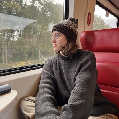 Noen is a super warm and cozy hat with a simple fair isle pattern. Instructions are provided for folded and unfolded brim.