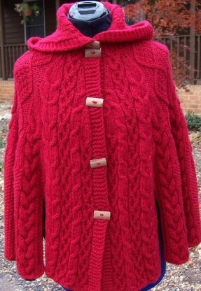 This amazing creation is a celebration of Celtic knitting – cables, twisted stitches, seed stitch and combinations of all those coalesce into this classic garment that is as much fun to knit as it is to wear. Knit completely in one piece with increases strategically placed to then “grow” into more stitch patterns, the project takes approximately 1400 yards of heavy worsted wool.