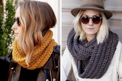 The simplicity of this everyday effortlessly chic cowl is dressed up with a ribbed herringbone effect. This pattern is unisex and provides instructions for both the Petite (cowl shaped single loop) and XL (infinity scarf shaped double loop) sizes.