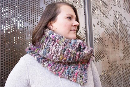 This simple yet stunning textured cowl features a unique design that allows for a comfortable customized fit. The gorgeous and colorful Cast Away yarn is incredibly soft and light creating a cowl that is exceptionally warm and almost weightless around your neck. Cowl length is easily adjustable to work for any height/size, and it can be worn doubled, buttoned, unbuttoned, and much more!