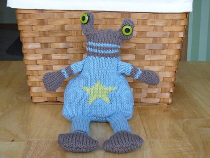 Norbert is a handsome hand-knit monster from out of this world. He is soft and cuddly, made from cotton yarn. He has big googly eyes, and a green star on his belly that gives you good luck when your rub it! He is 8" tall when seated, and stands up to 14" tall. His arms stretch out making him 10" wide. Norbert would be a great pal for any little one.