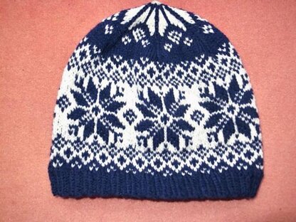 When I was a teenager I loved to knit Norwegian designs. Now I saw a hat, that incorporated an Icelandic pattern but changed the front and back color in the pattern. I needed a beanie like that, too! :) So here it is. It's a Nordic star with a rhombus border pattern. The ribbing is one color. And last but not least at the top is a Nordic star, too!