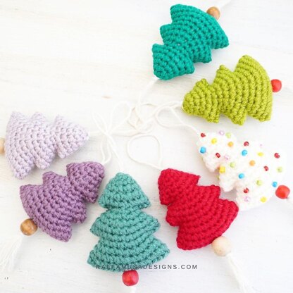Cute Nordic Christmas Tree Amigurumi for making Christmas tree ornaments, festive garlands for the Holidays, gift tags, keychains, etc.