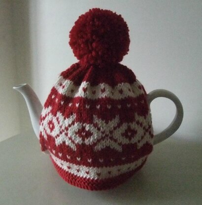 A beautiful snowflake patterned tea cosy to make your Christmas table festive. All topped off with a pom pom.