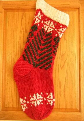 This generously sized stocking is quick to knit in a bulky weight yarn or any weight of your choice. Perfect for those last minute projects! Starting with a broken rib stitch cuff, it is knit top-down with a short flap heel and star toe. At a finished size of about 16” around x 25” long it will hold lots of goodies!