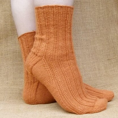 Pattern gives stitch counts for extra small (small, medium, large, extra large); approximately equivalent to 13 (16.5, 20, 23, 26.5) cm / 5 (6 ½, 7 ½, 9, 10 ½)” circumference at ball of foot. The ribbed pattern pulls the fabric in, giving a snug fit and making the sizing fairly flexible; if you are between sizes choose the larger size. Leg and foot lengths can be altered to suit.