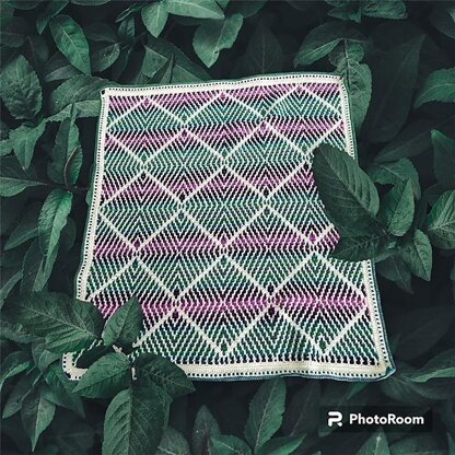 This pattern is an overlay mosaic pattern with no special stitches. It comes with full written instructions, a stitch chart and links to video tutorials.
