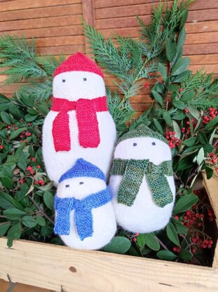 The snowman is worked in felting aran yarn (I used DROPS Nepal with 6 mm / US# 10 needles.