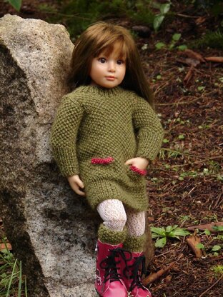 'Nuala’ ~ A Textured Stitched Sweater Dress complete with Boot Liners, especially designed to fit 18” slim all vinyl Girl Dolls like my model Lena from the Kidz n’ Cats® dolls & comparable sized