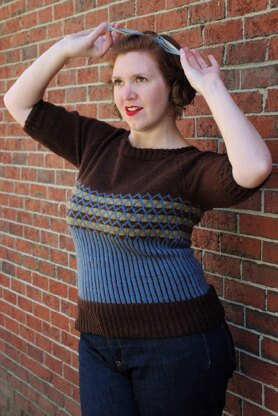 Inspired by sweaters of the 1940s and 50s, this seamless raglan pullover features a geometric colorwork pattern reminiscent of acorns and is perfect for your next sock hop or pep rally. Knit from the bottom up without waist shaping.