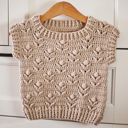 Vests are perfect for any season. They can be worn with a short sleeve t-shirt underneath for hotter days or with a long sleeve shirt for cooler days. It can be made with cotton blend yarn for spring/summer or with warm yarn like alpaca or wool. It’s worked bottom up, with no seams, then divided for back and front. Only seams to make are shoulder seams. If you wish you can add sleeves to it and make a sweater out of it. Just work dc in rounds until desired length, can add some decreases to make them tighter and at the end work the ribbing.