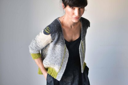 This top-down seamless Cardigan features striking epaulettes worked with an adapted set-in sleeves construction.
