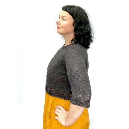 Designed to be worn cropped and layered, this pattern is readily adaptable to suit your style - lengthen the body and or sleeves or crop the sleeves for a summer T.