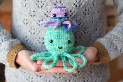 The Octopus pattern has instructions for both a fingering weight and a worsted weight version. Both are worked the same, seamlessly, from the top-down. The legs are cleverly worked right into the bottom of the body so no extra finishing is needed. The fingering weight Octopus makes a great ornament!