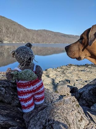Pictured Odie is knit with yarn held double for marled effect. Optional is to use only single strand of yarn.
