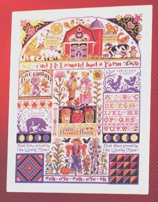 By Sandy Orton. Old McDonald’s Farm Sampler has long been out of print and is one of our most requested samplers. He’s back with Mrs. McDonald and all of the animals named in the famous children’s song. Eeh eye eeh eye oh!