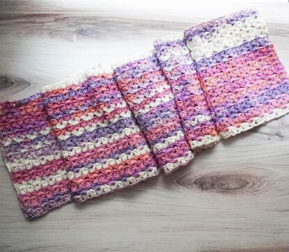 Using two variations of the popular v-stitch combination, this pattern has an easy to remember 2-row repeat. This one-skein summer scarf uses self-striping yarn to make colorwork easy. Wear it as a rectangular shawl in transitional weather.