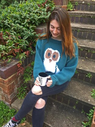 This warm, chunky sweater is designed to be oversized, making it ideal for relaxing in. It features Oliver Owl, who appeared on my first published hand knit pattern sized for toddlers and young children, and remains one of my most popular patterns to this day.
