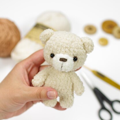 With this crochet pattern, you can make your own adorable little amigurumi teddy bear. The pattern covers the whole process from start to finish, illustrated with many step-by-step photos. All you need to know are basic crochet stitches, everything else is explained in the pattern.