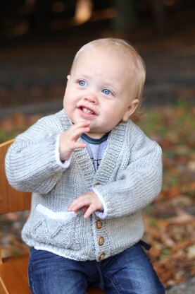 I designed Oliver’s Cabled Sweater for my Great-nephew Oliver. My Niece Adrian has four boys and makes sure all boys look dapper while attending Mass. Adrian only had a few preferences for Oliver’s sweater. She wanted the main color grey, a small trimming of white and the dominant feature to be cabling. The pattern before you is the end result of my brainstorming with cable stitch patterns and different shades of grey. Both Adrian and I are very pleased with the results. Also, you can see by Oliver’s happy face he is as well. I think if I look really close at his face, his shining blue eyes are saying “Thank you Aunt Joanie, I love it. You’re the best Aunt ever!!!!