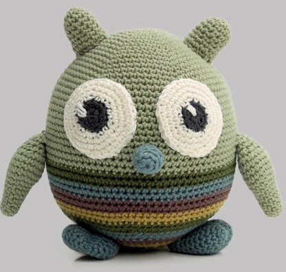 Ollie the Owl stands approx 21 cm tall if made by the recommended yarn