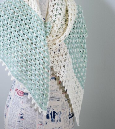This lacy, striped scarf is worked from one end to the other using two colors of light fingering weight yarn.