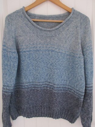 This is a pattern for an Ombre Jumper, originally published in Knitting magazine. It is a simple casual shape, in blocks of colour blending together with stripes in a cotton denim dk. Length 59-62.5 cm.