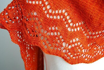 This elegant crescent shawl is knit side to side and incorporates an easy lace edging featuring the subtle sparkle of beads. Instructions are included for how to customize the shawl to accommodate your yarn if you have more or less than the pattern specifies. The lace edging is both charted and written.